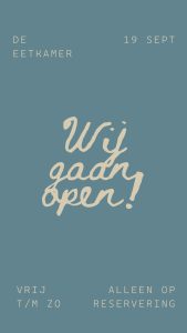 In ons pand openen we op 19 september het restaurant ‘De Eetkamer’. Dit is een Franse Bistro, met Franse klassiekers. Check voor meer info de socials.